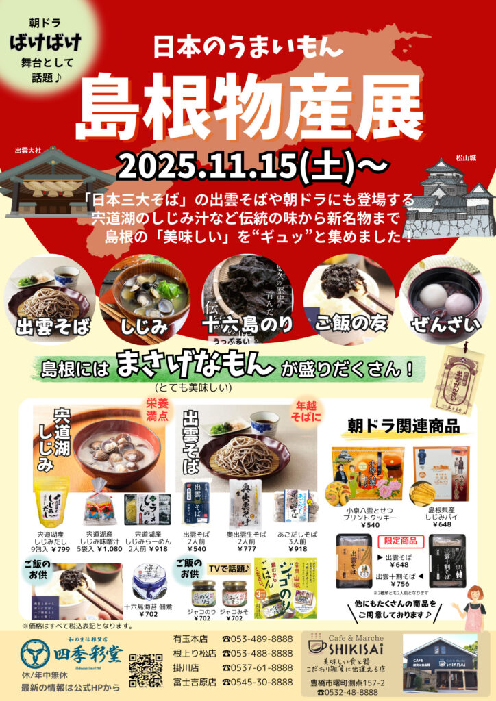 11月15日(土)~年末に向けて、島根県を代表する物産品が勢ぞろい!