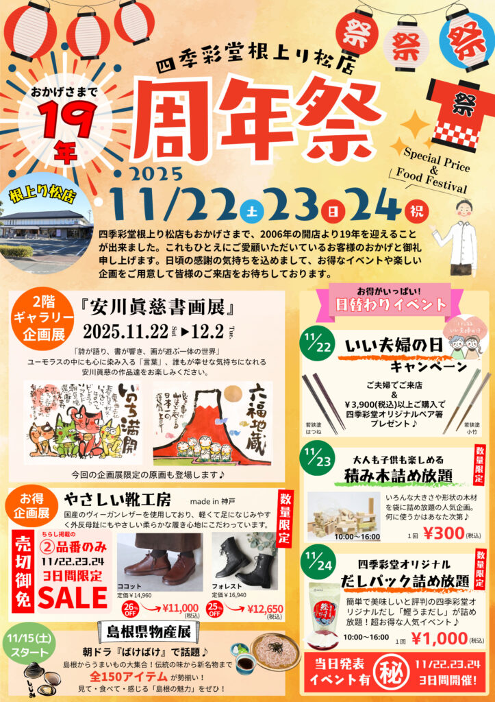 根上り松店19周年祭 11月22日(土)-24日(月祝)