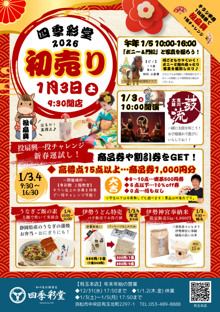 令和8年 四季彩堂の初売り 1月3日(土) 9:30開店