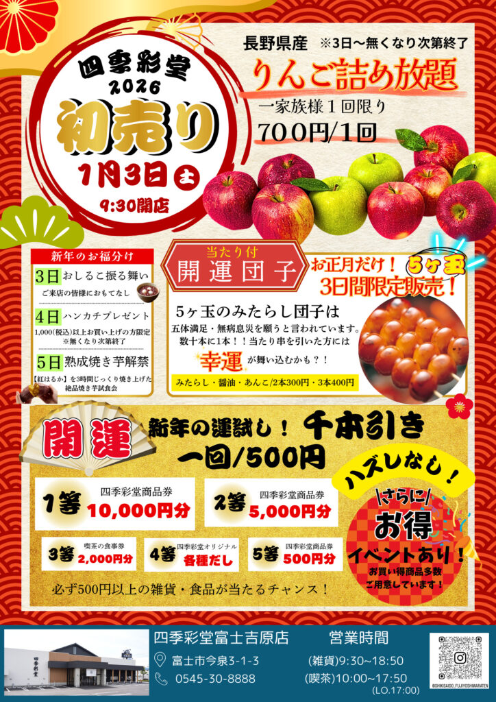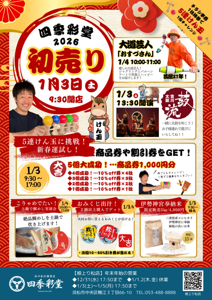 お正月は、ぜひ四季彩堂に遊びにいらしてください♪