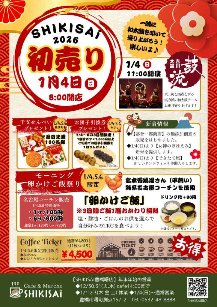 12月30日・31日 物販/17:50まで cafe/14:00まで