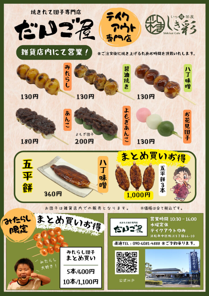 「だんご屋」根上り松店テイクアウトお団子メニュー